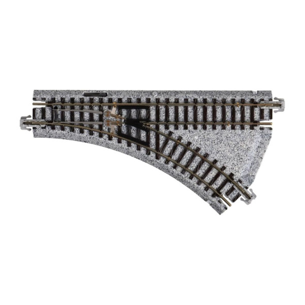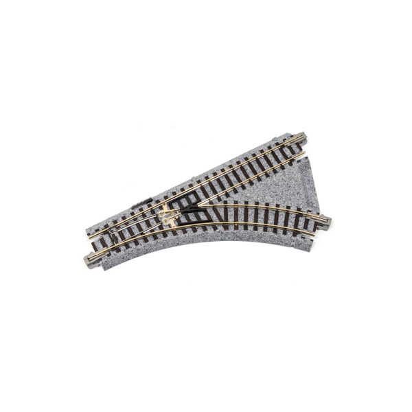 Desvío radio pequeño, ideal únicamente para trenes ligeros, ferrocarriles industriales o tranvías. No apto para trenes de alta velocidad ni trenes bala.