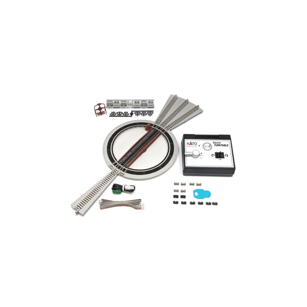 La plataforma giratoria Kato cuenta con un puente giratorio suave y estable que se alinea firmemente con las vías de salida. Para operarlo, puede presionar el interruptor una vez para pasar a la siguiente plataforma o mantenerlo presionado para continuar girando la plataforma hasta que lo suelte. Las vías de salida se pueden mover alrededor de la plataforma para adaptarse a su posición y funcionan con el propio puente, lo que permite el autoaislamiento en las vías de salida no utilizadas.