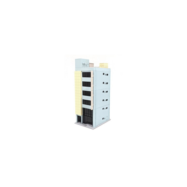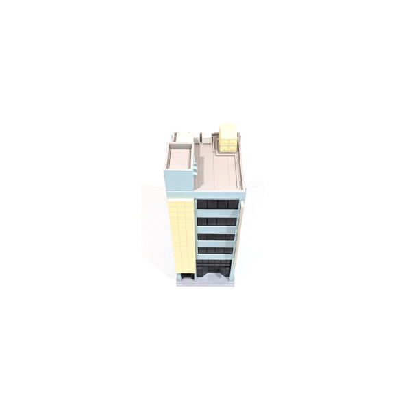 Edificio cuadrado de 6 plantas con fachada estrecha y profundidad, común en zonas urbanas